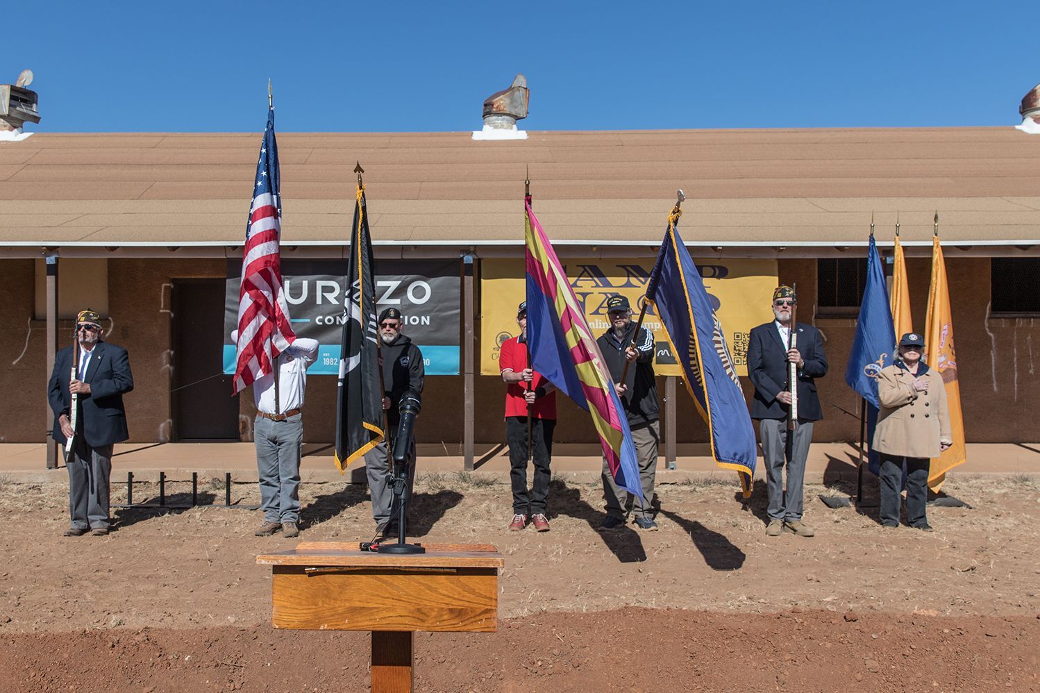 On January 30, 2025, the Naco Heritage Alliance (NHA) reached a critical milestone. Working with our partner Durazo Construction Corporation we took the plunge and broke ground, formally beginning Phase One of the rehabilitation of Camp Naco. We were honored to be joined by a color guard with members of our local VFW and American Legion, as well as numerous NHA board members, City officials and council members, and many dedicated supporters of the Camp Naco project. We could not have reached this point without the support of State of Arizona’s Governor’s Office and the Mellon Foundation.